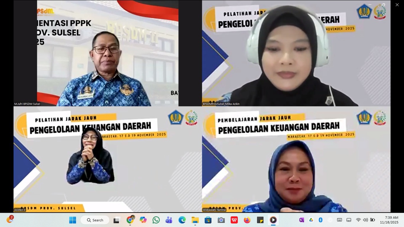 Makassar, DailyIndonesiaNews — Badan Pengembangan Sumber Daya Manusia (BPSDM) Provinsi Sulawesi Selatan menggelar Pelatihan Jarak Jauh (PJJ) Pengelolaan Keuangan Daerah bagi Pejabat Administrator lingkup Pemprov Sulsel, Senin, 17 November 2025.